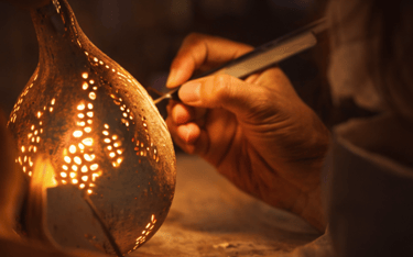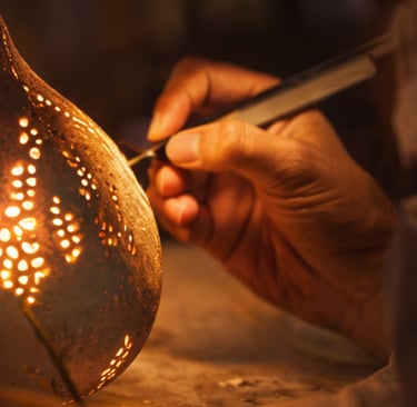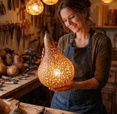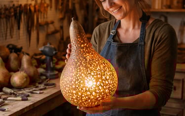 Forte de mon expérience d’artisane d’art et guidée par le plaisir de transmettre, j’ai créé une formation unique autour de la transformation de la calebasse en luminaire, savoir-faire rare, vivant et durable.